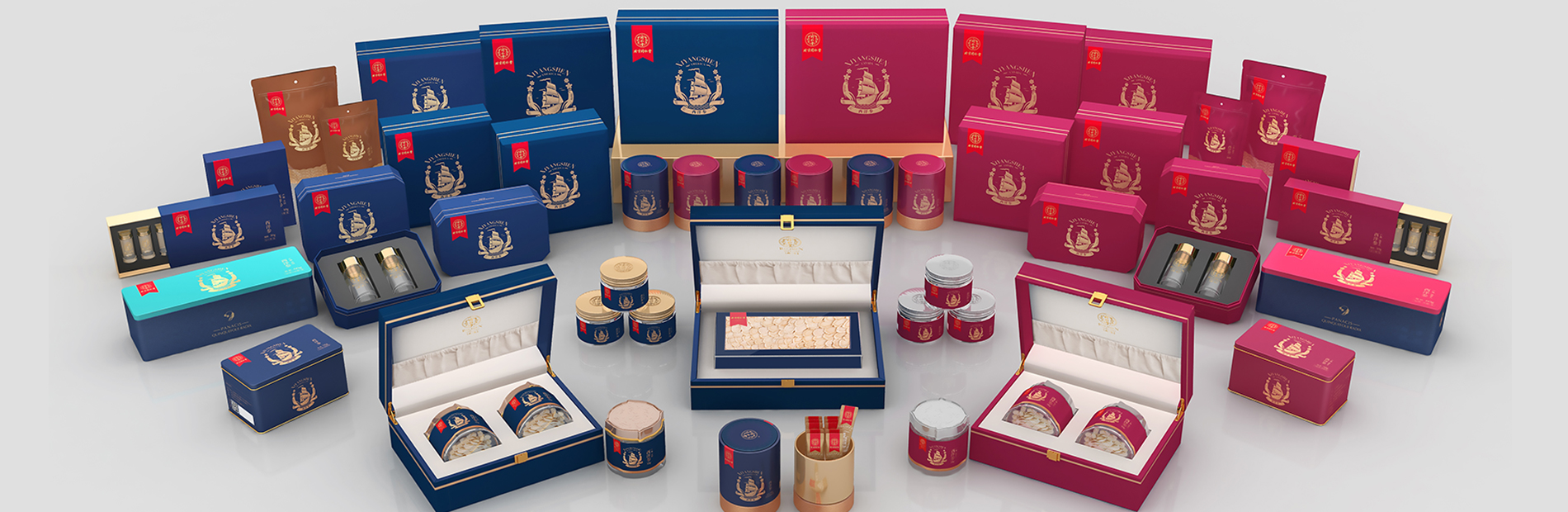以皇后號帆船作為西洋參的文化象征符號和設計源點,以西洋參的外形形象凸顯產(chǎn)品道地的黃金品質(zhì)。同時繼承同仁堂的文化精神,以古代只有皇家貴族才使用的傳統(tǒng)紋樣“江岸海水”來傳承延續(xù)同仁堂連續(xù)188年供御藥殊榮,同時也證明同仁堂成藥的品質(zhì)優(yōu)良,可以和御藥房所制成藥互為“替代”。