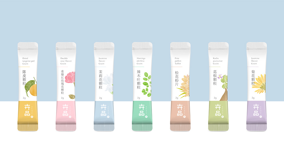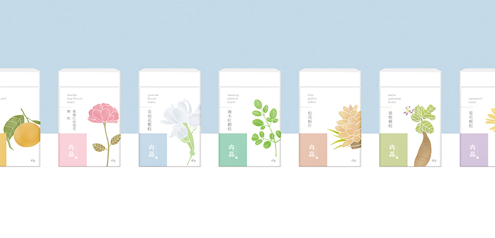 李華清圍繞由品牌理念所推導出的價值主張視覺化內容,也就是自然養生的概念元素。運用水彩插畫的風格,繪制出產品使用的形態。花朵在水中搖曳的唯美瞬間,化為紙上慢慢暈開的筆墨,猶如產品溫和滋潤我們的身心。唯美、溫潤,散發著清新的自然之味。傳遞出產品精致的氣質,詮釋出植物茶飲的自然清新,為傳統茶飲注入新鮮活力。